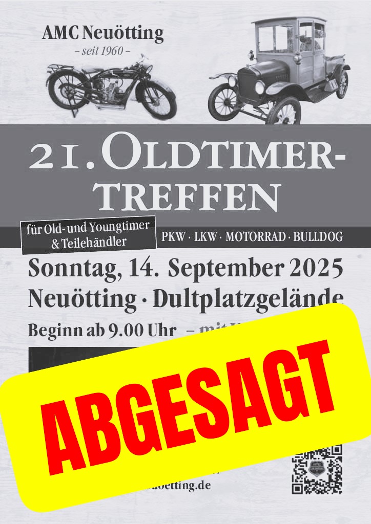 Aufgrund der Wettervorhersage und der ungewissen Situation auf dem Platz und des damit verbundenen zu großen Risikos, kann unser Oldtimertreffen 2025 leider nicht stattfinden. Wir bedauern es sehr, aber hoffen, [...]